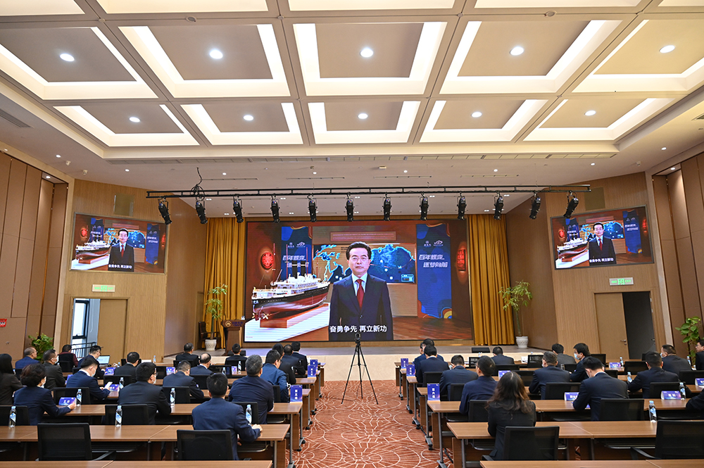 缪建民在致辞中表示,在喜迎党的二十大胜利召开、欢庆新中国成立73周年之际,我们迎来了招商局集团2022年公司日。今年恰逢招商局创立150周年。150年,一代又一代招商人为梦想而追逐,为信念而前行,奋力书写了一部“与祖国共命运,同时代共发展”的历史征程。150年的发展成果来之不易,弥足珍贵。希望大家从招商局“百年蝶变、逐梦向前”的发展史中,汲取奋斗的深厚力量,坚定前行的理想信仰,在逐梦之路上奋勇争先、再立新功。
