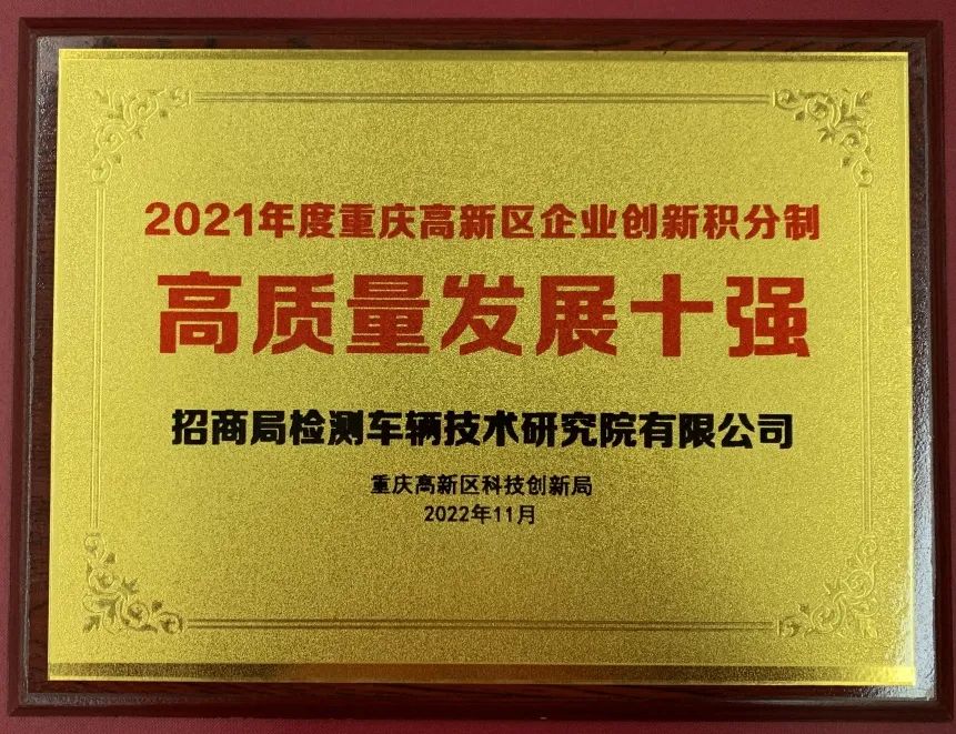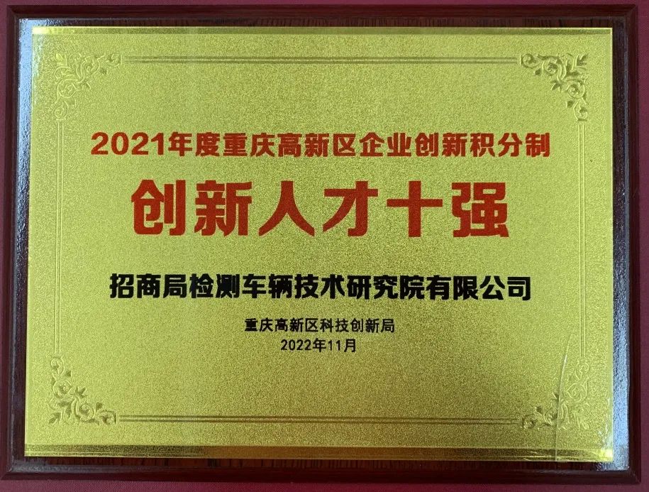 12月26日,重庆市科学技术局指导、重庆高新区科技创新局主办的西部科学城重庆高新区企业创新积分制平台暨企业创新榜单发布会在西部(重庆)科学城大创谷·梦花园举行。招商车研凭借“硬科技”“硬实力”脱颖而出,荣获重庆高新区企业创新积分制“高质量发展十强”“创新投入十强”“创新人才十强”共3个类别“十强”企业。