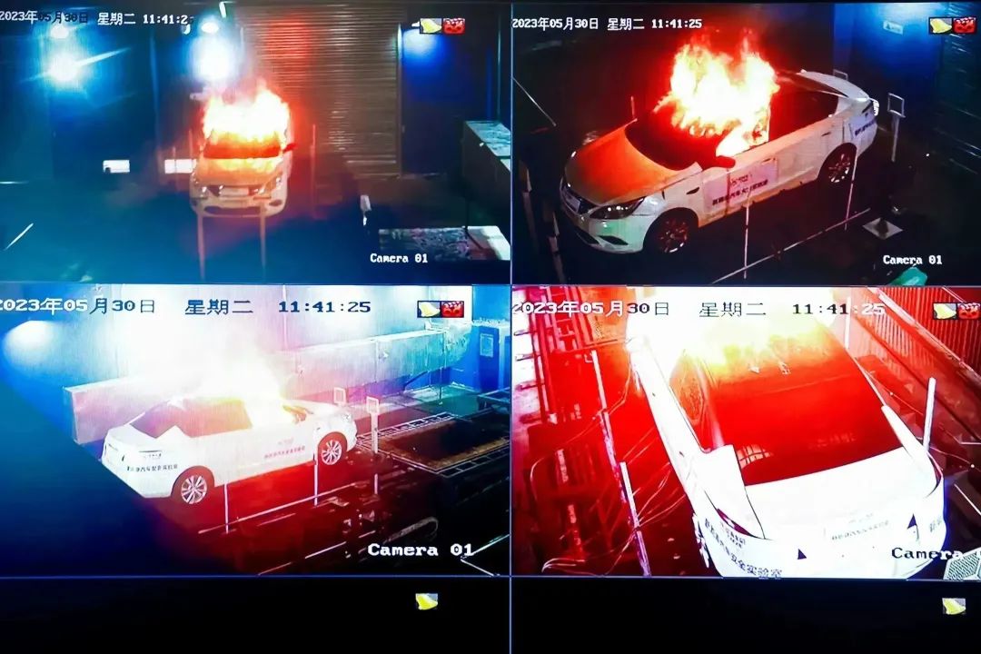 招商车研新能源汽车中心拥有我国首个新能源汽车整车火烧实验室,实验室体积8000立方米;配备有每小时23万立方米烟雾处理系统,实时处理火灾试验中产生的废气;能够再现12米以下新能源汽车整车及零部件火灾事件,并配有多种灭火方式,可研究新能源汽车整车及零部件在火灾状态下的极限安全性能。试验过程中,会对温度、电压、压力、流量、温度场、烟气浓度、烟气成分、图像、火焰高度、热辐射等20余种500余路的数据进行采集和保存,以此作为评判电动汽车火灾安全指数的原始数据并永久保存。