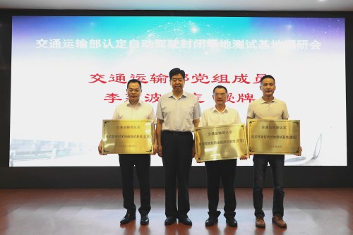 来自上汽、东风、华为、中汽中心、清华大学等40余家单位代表参会。会上,交通运输部科技司副司长袁鹏宣读了《交通运输部办公厅关于公布自动驾驶封闭场地测试基地名单的通知》,交通运输部公路科学研究院、长安大学、重庆车辆检测研究院有限公司分获交通运输部认定 “自动驾驶封闭场地测试基地(北京)”、“自动驾驶封闭场地测试基地(西安)”、“自动驾驶封闭场地测试基地(重庆)”的授权资质。